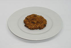 | Zubereitung | Haferflocken, Eiweißpulver, 1g Kakaopulver und die Sultaninen miteinander vermischen. Anschließend Erdnuss-Mus, 5g Honig, etwas Süßstoff und die Milch hinzugeben und das ganze zu einer zähen Masse verkneten. Anschließend den Teig in Keksform bringen, auf ein Stück Backpapier legen und im Backofen bei 170 Grad 20 Minuten backen. | ||||||||||