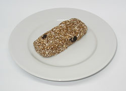 | Zubereitung | Haferflocken, Eiweißpulver, Sultaninen und Kakaopulver in eine Schüssel geben und vermischen. Erdnuss-Mus, Süßstoff und ein paar Tropfen Milch dazu geben und verkneten. Den Milchanteil tröpfchenweise erhöhen bis sich eine zähe Masse ergibt. Die zähe Masse durchkneten und in eine Riegelform bringen. | ||||||||||