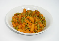 | Zubereitung | Erbsen-Möhren-Gemüse und Tomatensoße in eine Schüssel geben. Drei Minuten in der Mikrowelle erhitzen. Salzen und kräftig umrühren. | ||||
