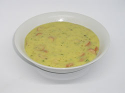 | Zubereitung | Kartoffeln in einem Topf weich kochen und das Wasser abgießen. Anschließend die Kartoffeln glatt pürieren und Wasser unterrühren bis ein flüssige Konsistenz erreicht ist. Jetzt die Würstchen kleinschneiden und dazu geben. Zum Schluss mit Salz und Pfeffer würzen sowie Petersilie und Kümmel dazu geben. | ||||||