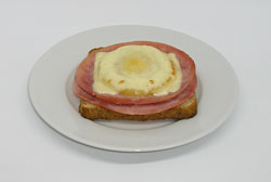 | Zubereitung | Eine Scheibe Sandwich-Toast mit zwei Scheiben Kochschinken belegen. Darauf eine Scheibe Ananas und diese mit einer halben Scheibe Käse belegen. Den Toast bei 220 Grad ca. 8 Minuten backen bis der Käse goldbraun geworden ist. | ||||||||